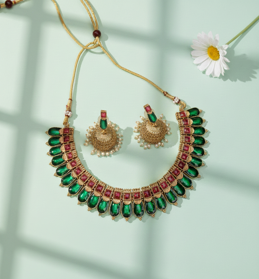 Ruby & Emerald Paisley Necklace Set