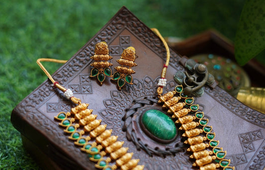 Antique Emerald Stone Necklace Set