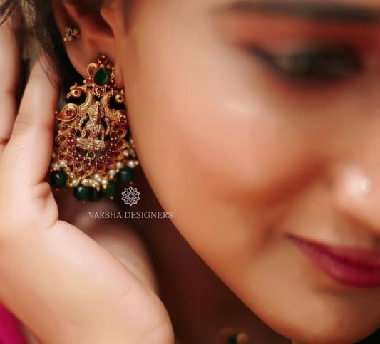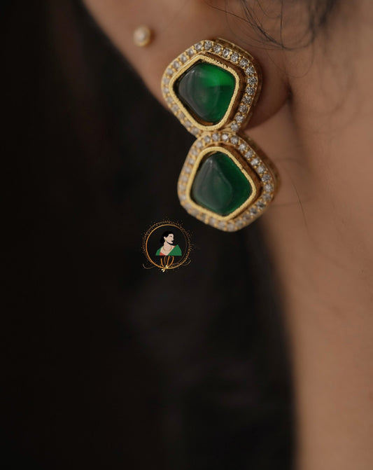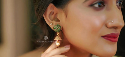 Antique Emerald & White Stone Jhumkas
