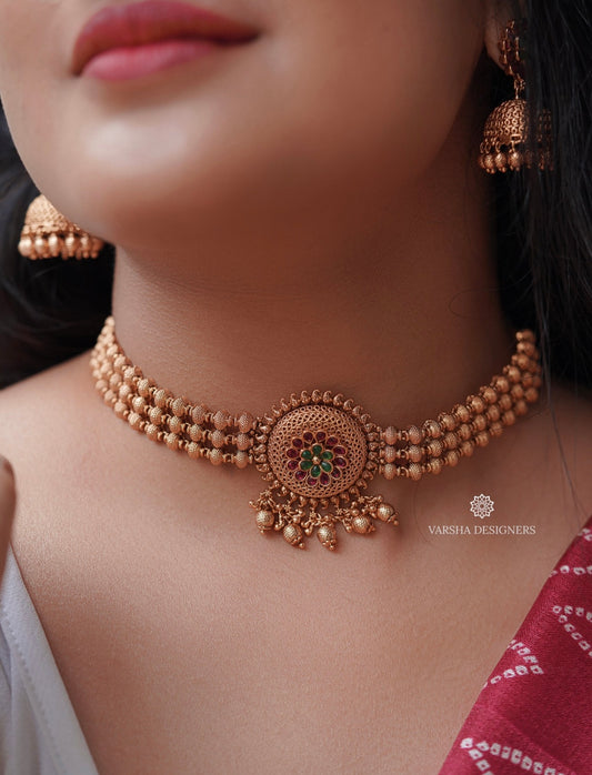 Antique Finish Chakra Floral Choker