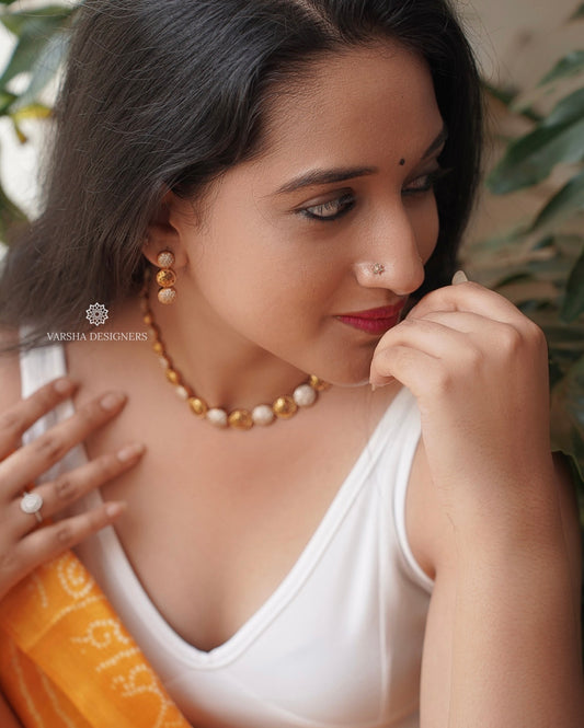 Matte Finish Lakshmi Pendant Pearl Choker