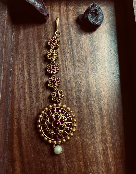 Matte Finish Kemp stone Maang Tikka