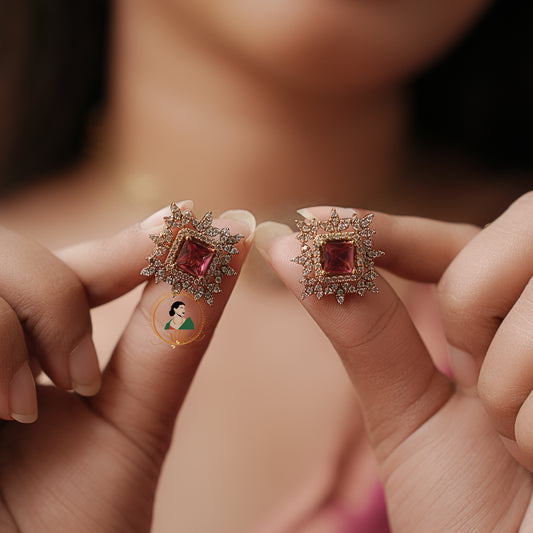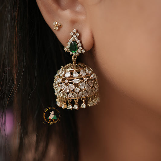 Emerald & White Stone Zircon Jhumkas