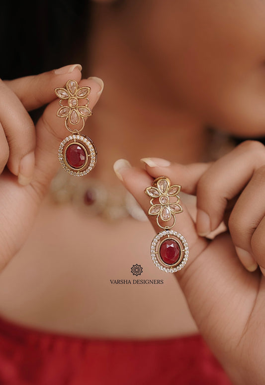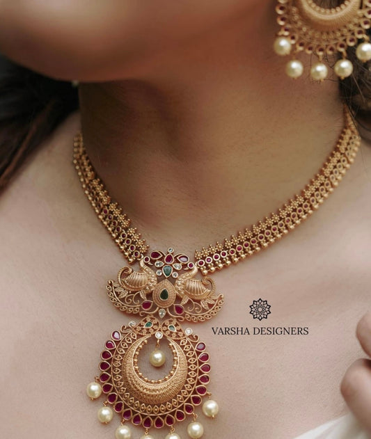 Traditional Matte Finish Ruby Necklace Set