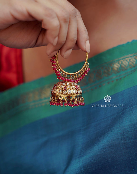 Hoop Jhumkas with Pink Pearls