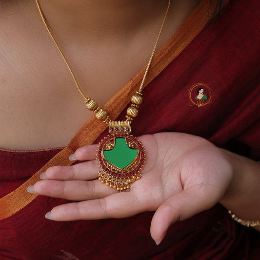 Kerala Style Kemp Sapphire Paisley Palakka Necklace Set