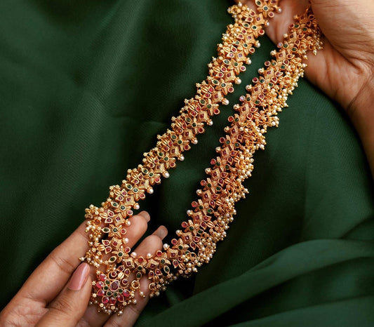 Matte Finish Gold Beaded Temple Haram