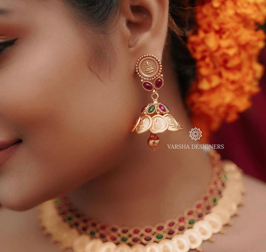 Matte Finish Bridal Lakshmi Coin Haram