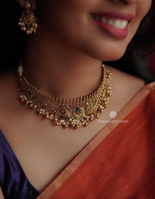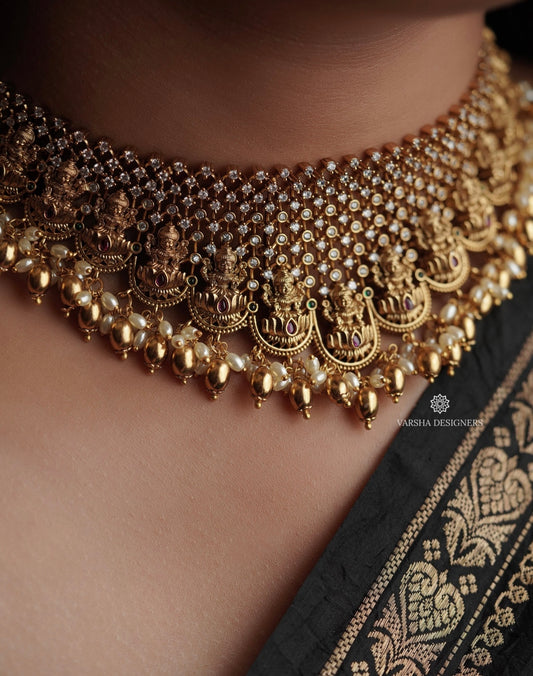 Antique Finish Lakshmi Rice Pearl Bridal Choker