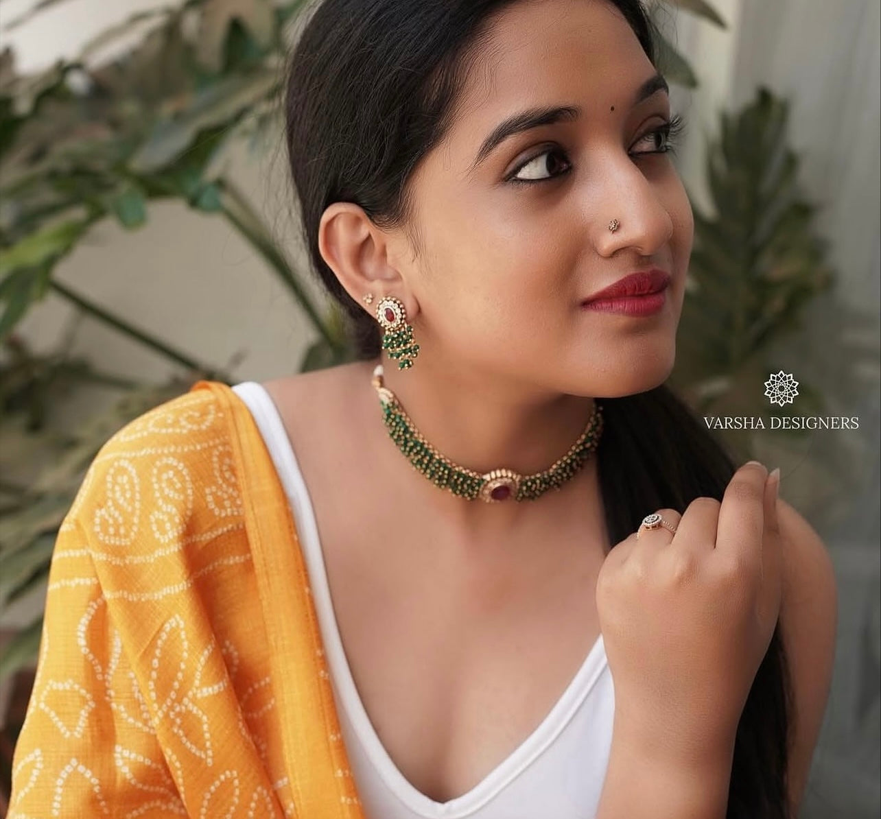 Emerald gungru studded choker set