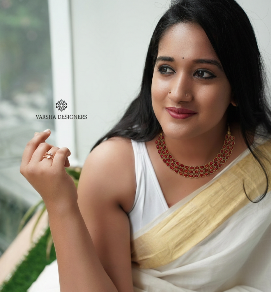 Elevate your collection with this exquisite ruby kemp necklace set, featuring an antique finish that exudes timeless sophistication. Crafted with precision, the deep crimson stones catch light beautifully, creating an enchanting glow perfect for festive occasions and celebrations.