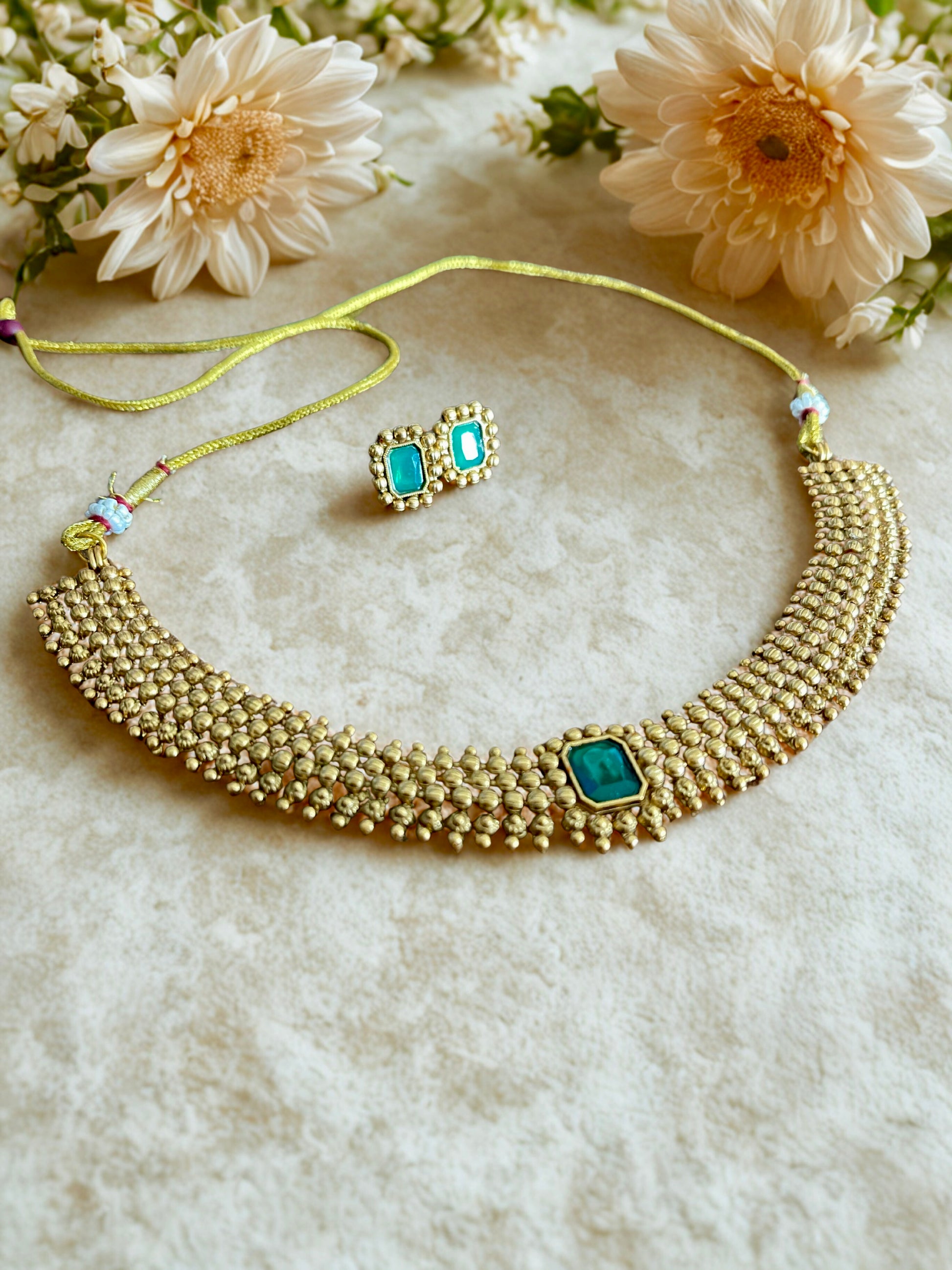 Simple Emerald Stone Necklace Set