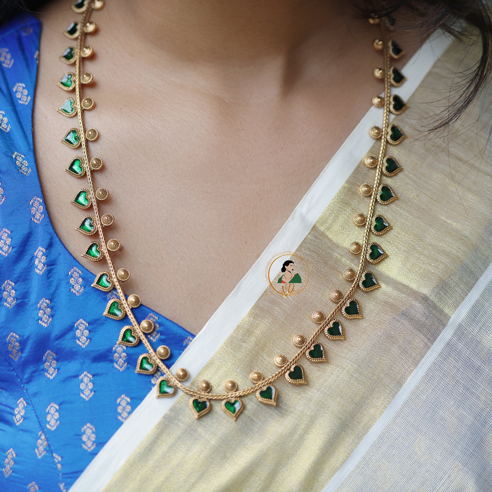 Elevate your bridal ensemble with this Traditional Emerald Long Haram, meticulously crafted to blend timeless elegance with rich Indian heritage. Perfect for weddings and special occasions, it offers both grandeur and cultural authenticity, making it an essential statement piece for the discerning bride.